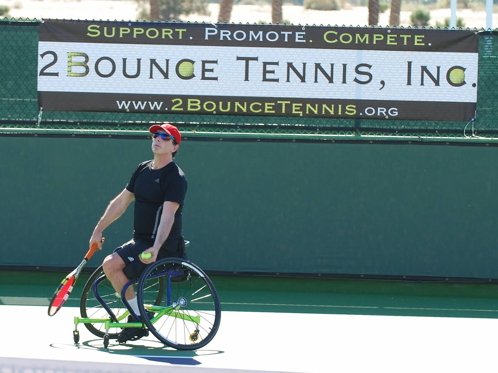 Hit twice today. For a while at Shadow Mountain where one of my tires blew. It was hot. 84 degrees, but of course hotter on court. Practiced at Indian Wells Tennis Garden in the evening.